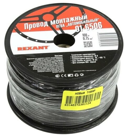 Wire PGVA Rexant, color: black, 1 x 0.75 sq. mm, length 100 m