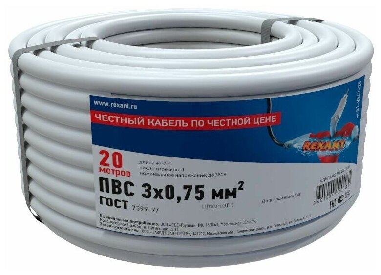 Power REXANT PVA Three-core 0.75 mm², 20 m