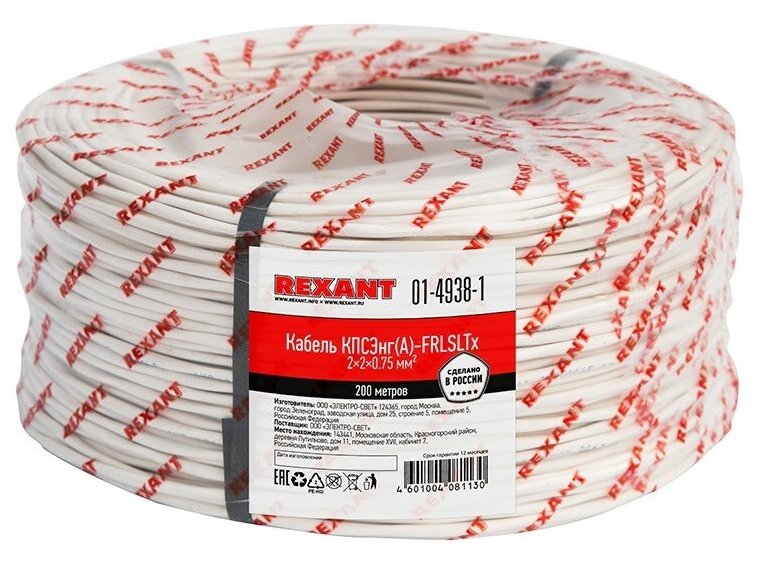 Fire alarm Rexant 01-4938-1 kpsengA-FRLSLTx 2x2x0.75 mm2 200 meters