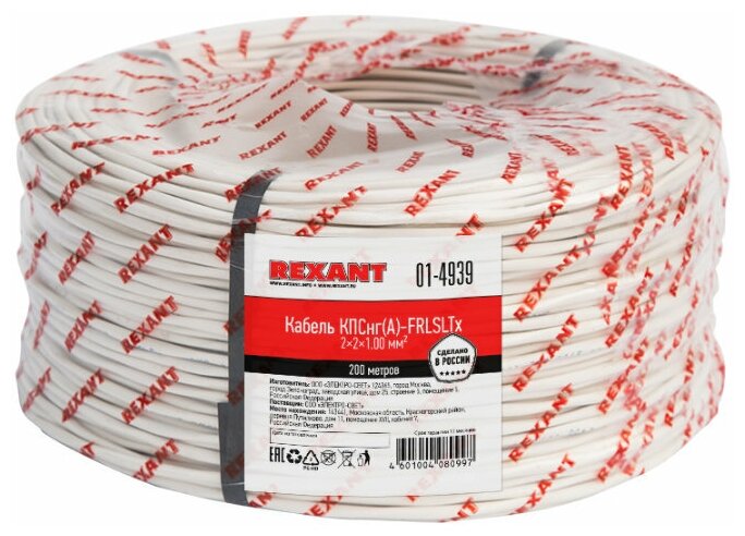 Fire alarm Rexant 01-4939-1 kpsengA-FRLSLTx 2x2x1.00 mm2 200 meters
