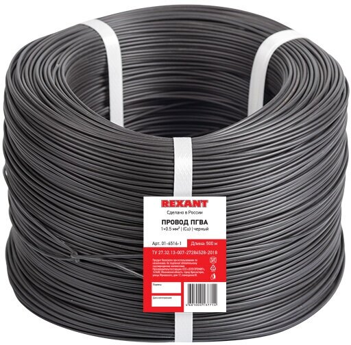 Wire PGVA Rexant 01-6516-1 1x0.50 mm, Cu, black, coil 500 m, reel