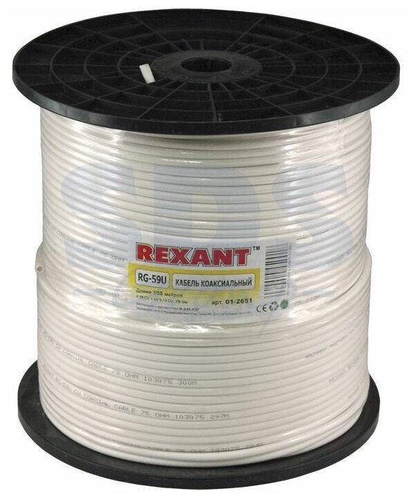 RG-59U+Cu 75 Ohm, Cu/Al/Cu 64% coil 305 m white Rexant, 1pc, REXANT, 01-2651
