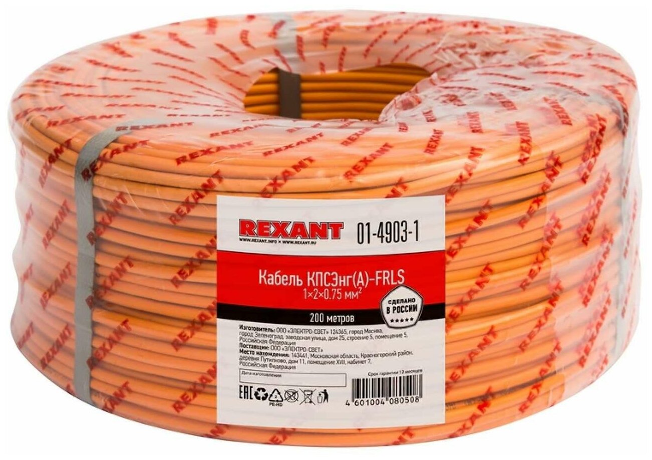 Sheath made of low fire hazard PVC with low smoke and gas emission, voltage up to 300V, color orange. 1 pair of paired strands of copper single-wire conductors with a diameter of 0.75 sq. mm in general screen