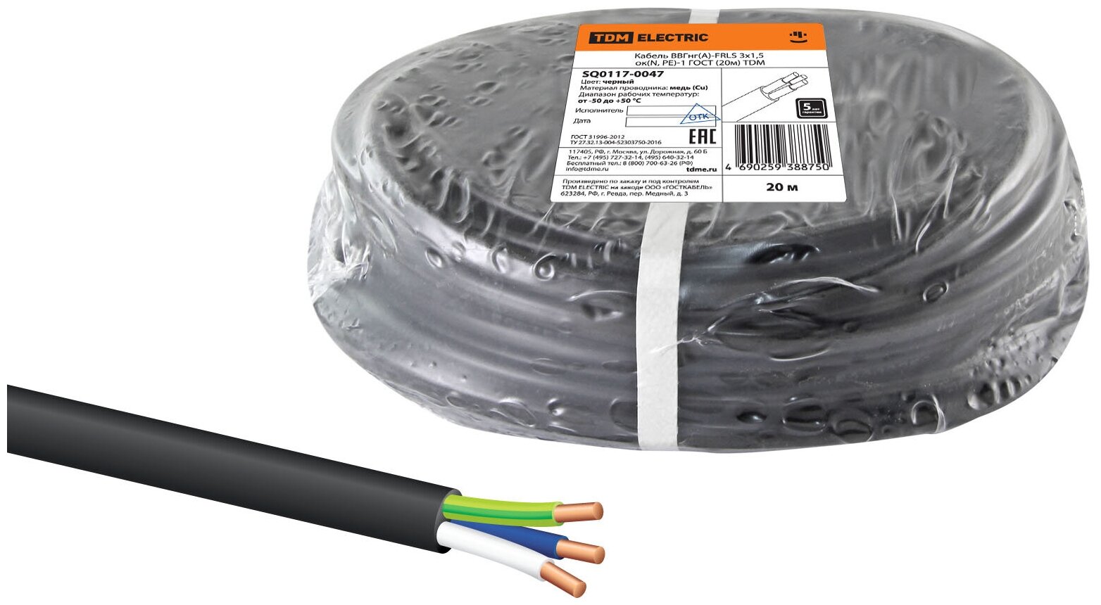 VVGngA-FRLS 3x1.5 okN, PE-1 GOST 20m TDM