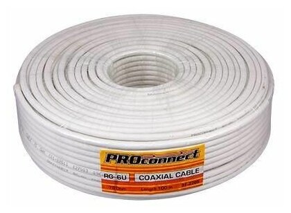 RG-6U+Cu 75 Ohm, Cu/Al/Cu 48% coil 100 m white Proconnect, 1pc