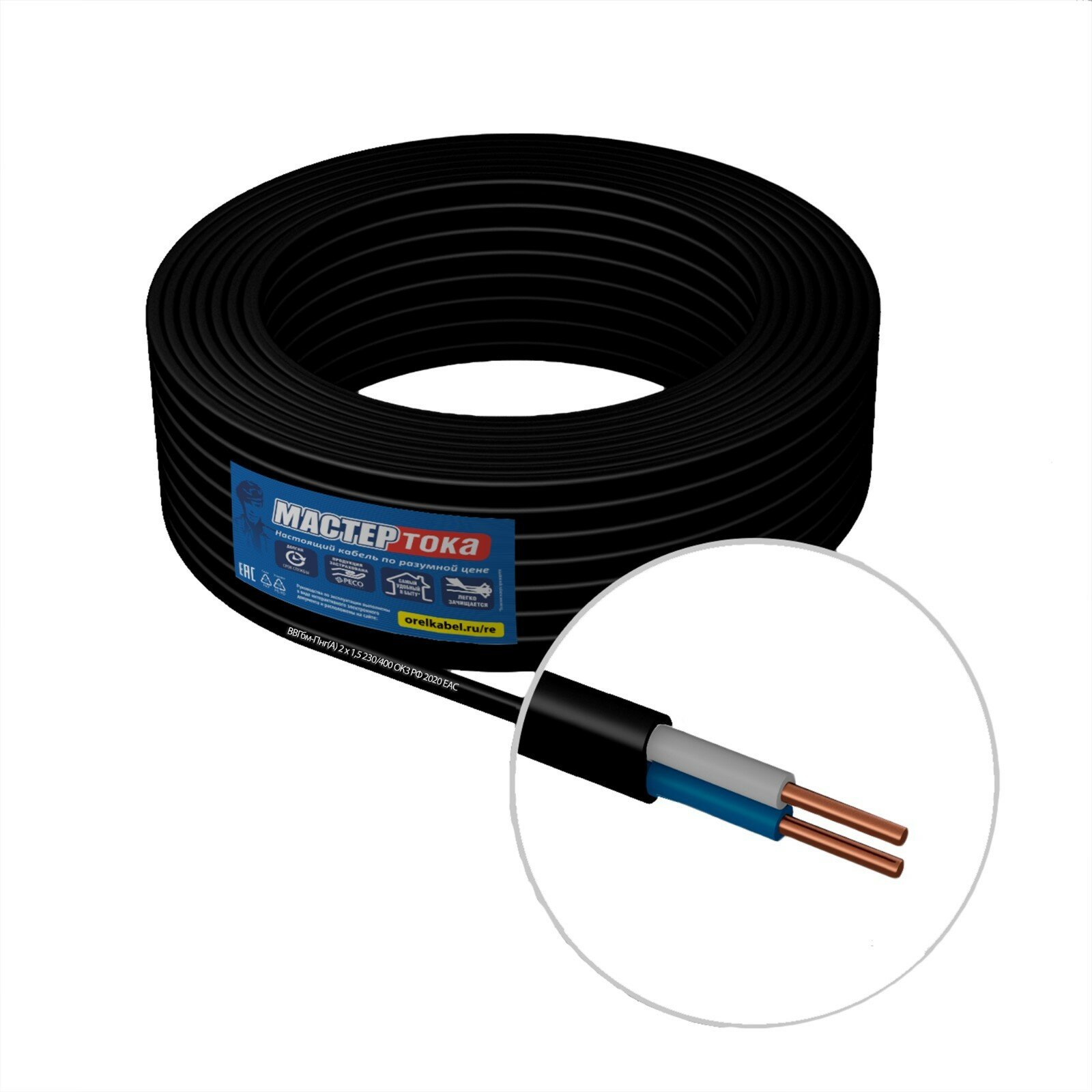 Cable Master Current VVG-PngA, section 2x1.5 mm2, 20 m, black