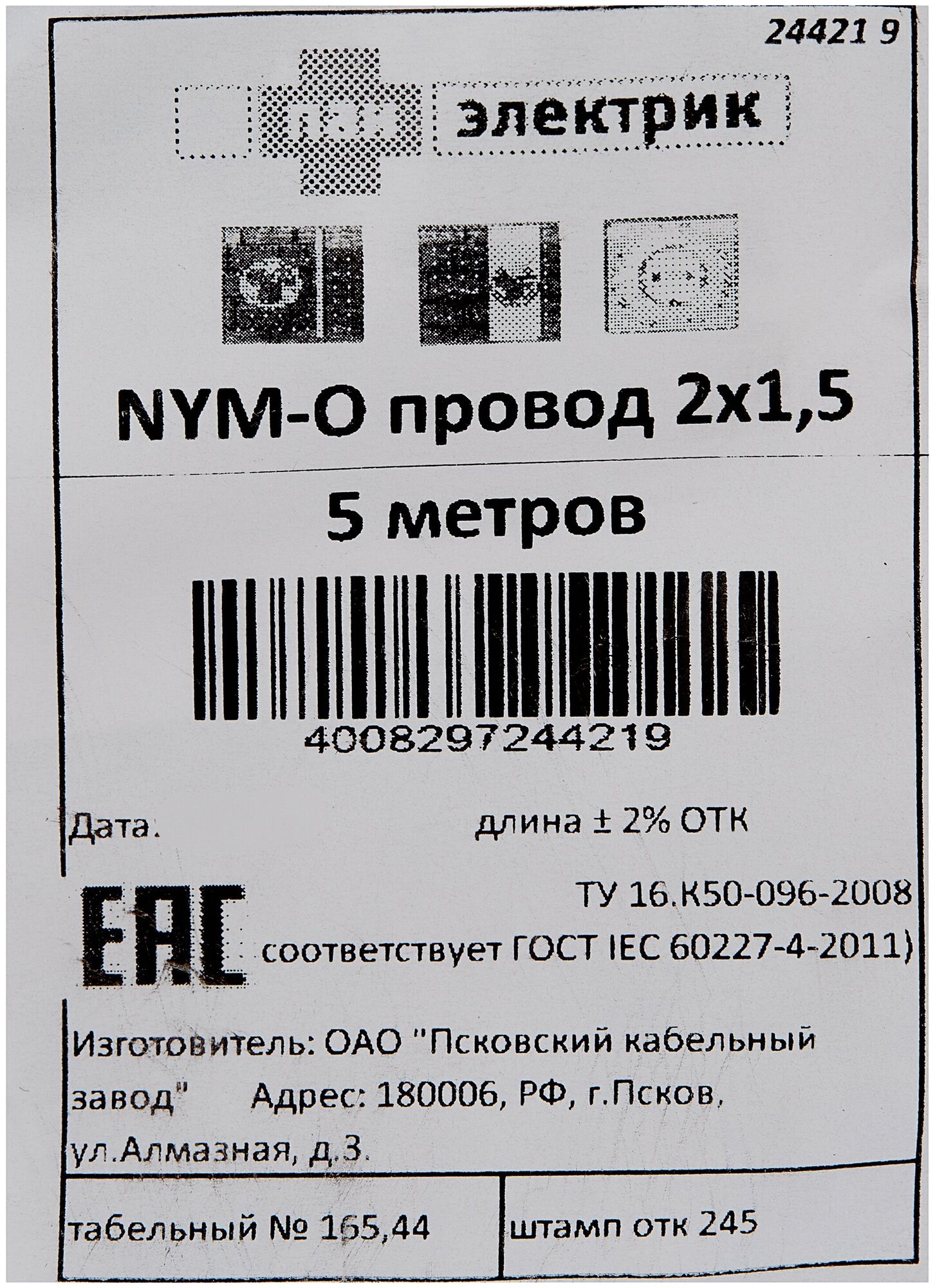 Cable NYM 2x1.5 5 GOST