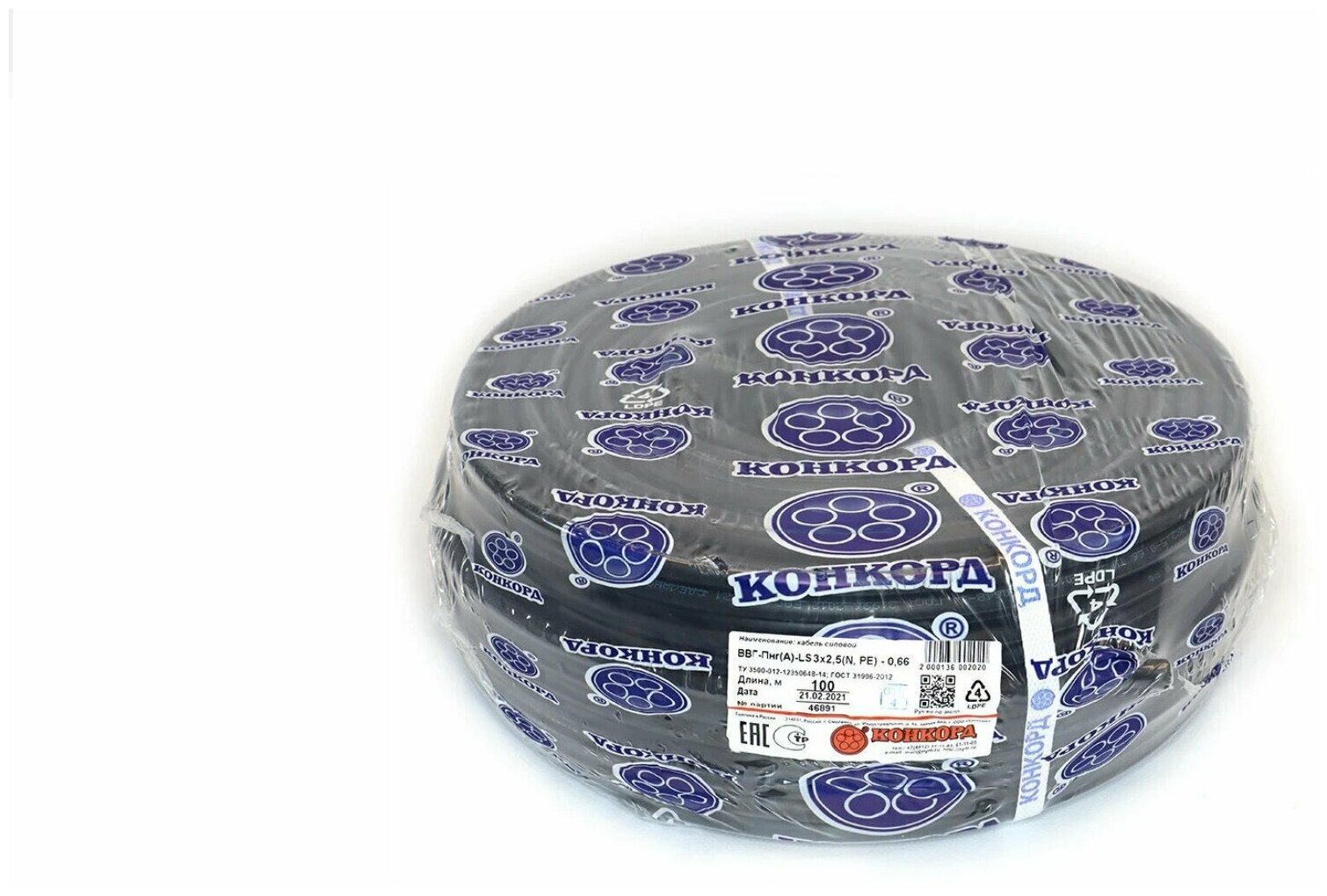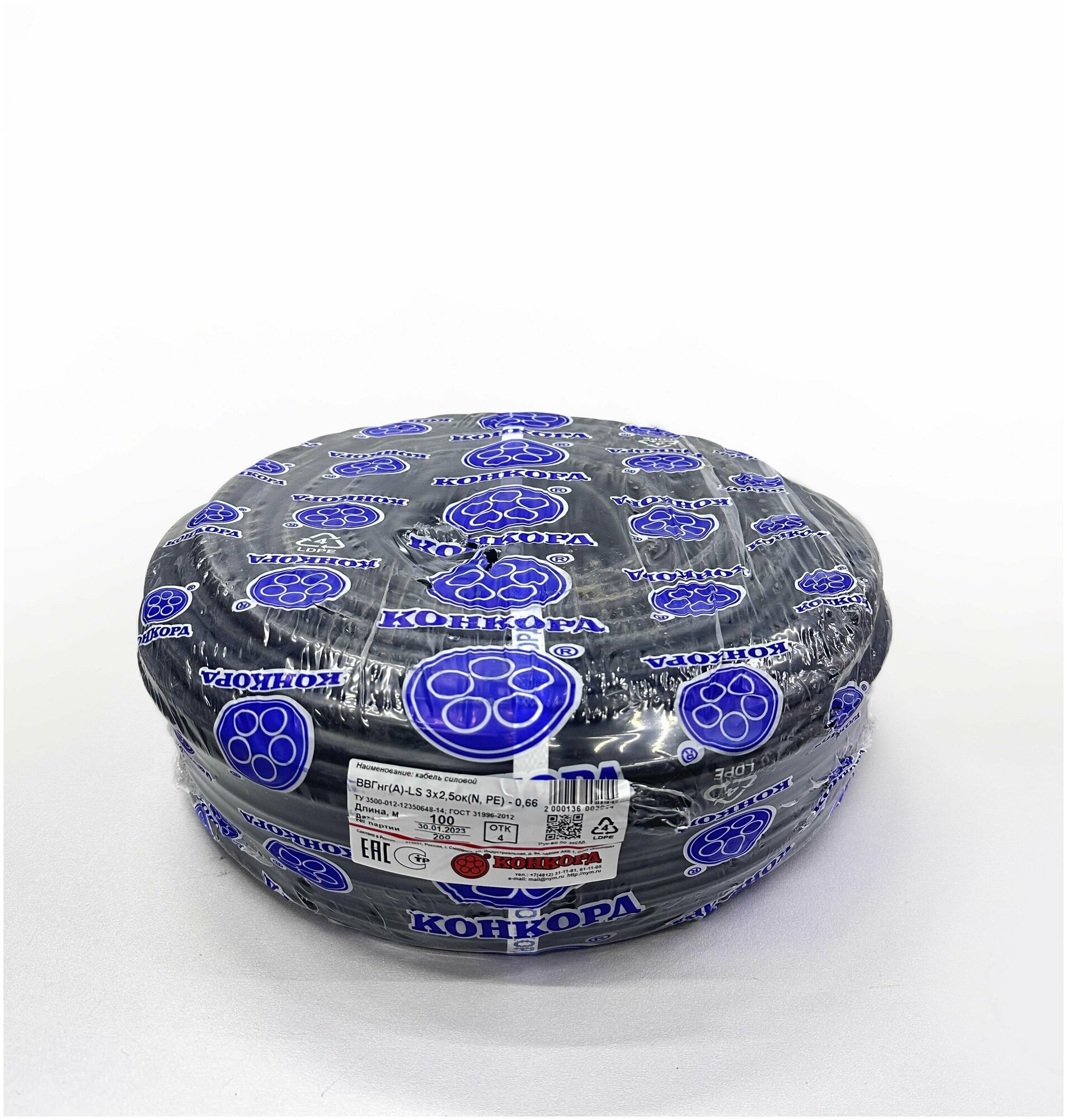 Power VVGng A - LS 3x2.5 round black non-combustible GOST in a 100m coil filled with triple insulation