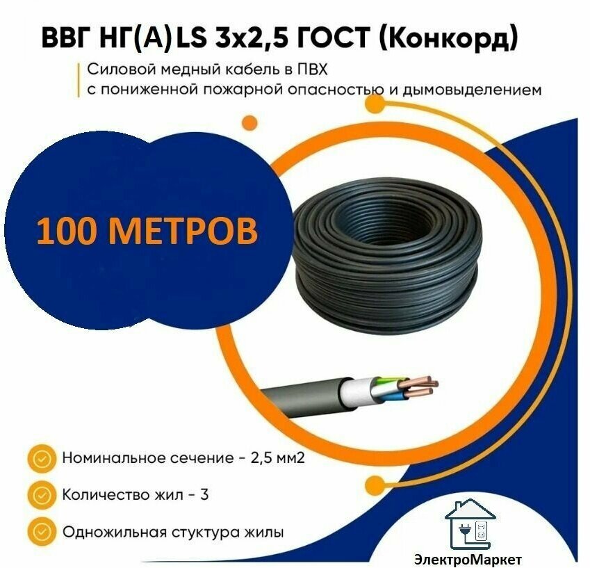 Cable product type: cable, cable type: power, marking: VVGngA-LS, core material: copper, GOST