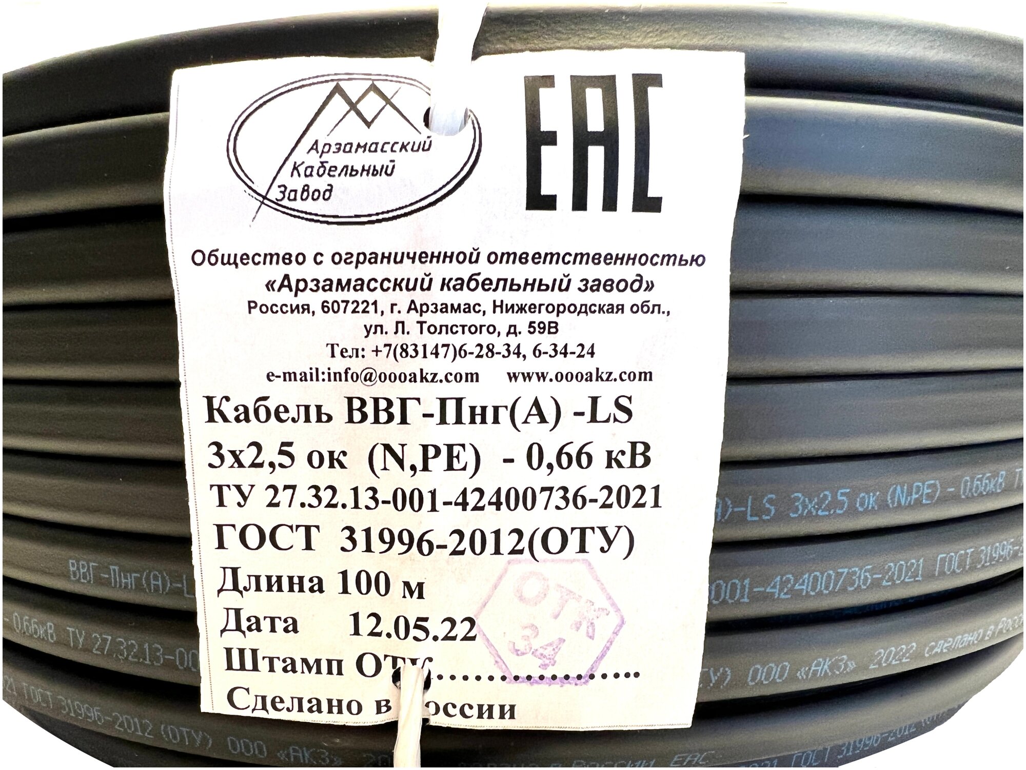 Cable VVGng / vvgpng LS 3x2.5 GOST 100m 13.5kg. Flat power electric wire VVG ng VVG-ng / VVG-Png 3x2.5 / 3 * 2.5 / 3 by 2.5