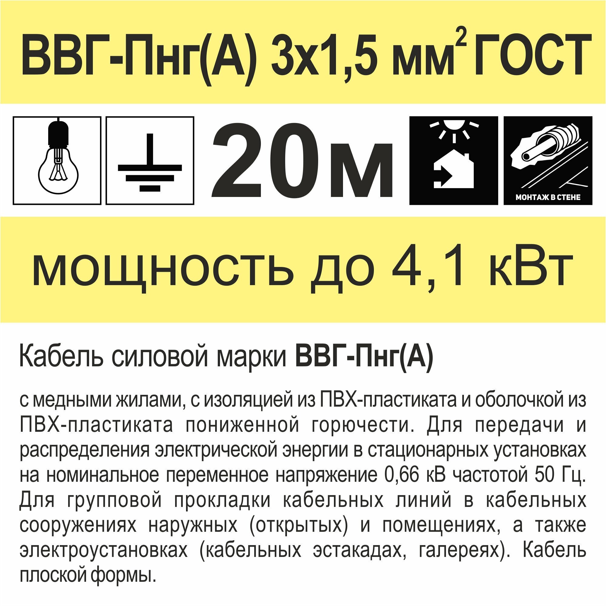 Cable product type: cable, cable type: power, marking: VVG-PngA, core material: copper, GOST