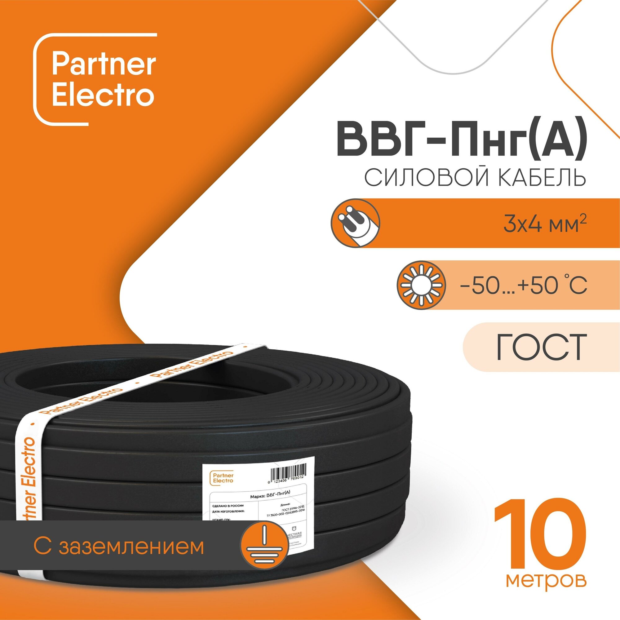 Cable VVG-PngA 3x4 sq. mm 20 m PARTNER ELECTRO GOST