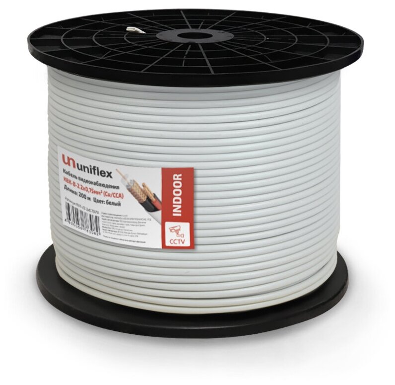 Video surveillance cable KVK-V-2 2x0.75mm Cu/CCA, white UNIFLEX 200m