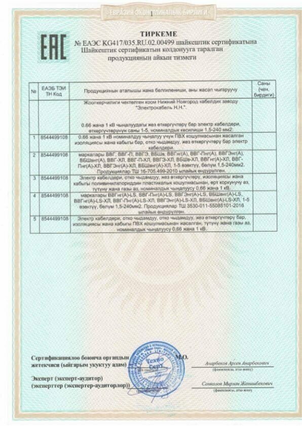 Cable product type: cable, cable type: domestic, marking: VBShvng A-LS, core material: copper, GOST