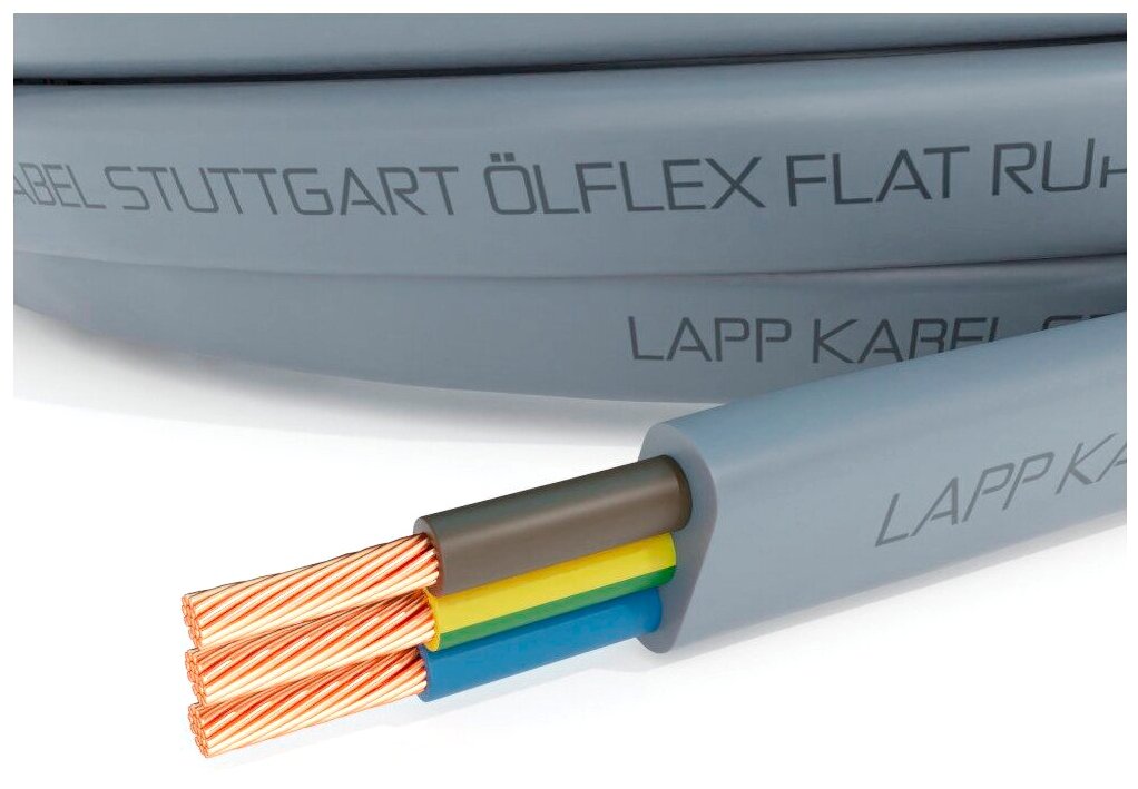 Flat cable and core construction;<br>operating temperature: restricted mobility from -15 to +70 °C, fixed application: from -50 to +80 °C;<br>UV-resistant