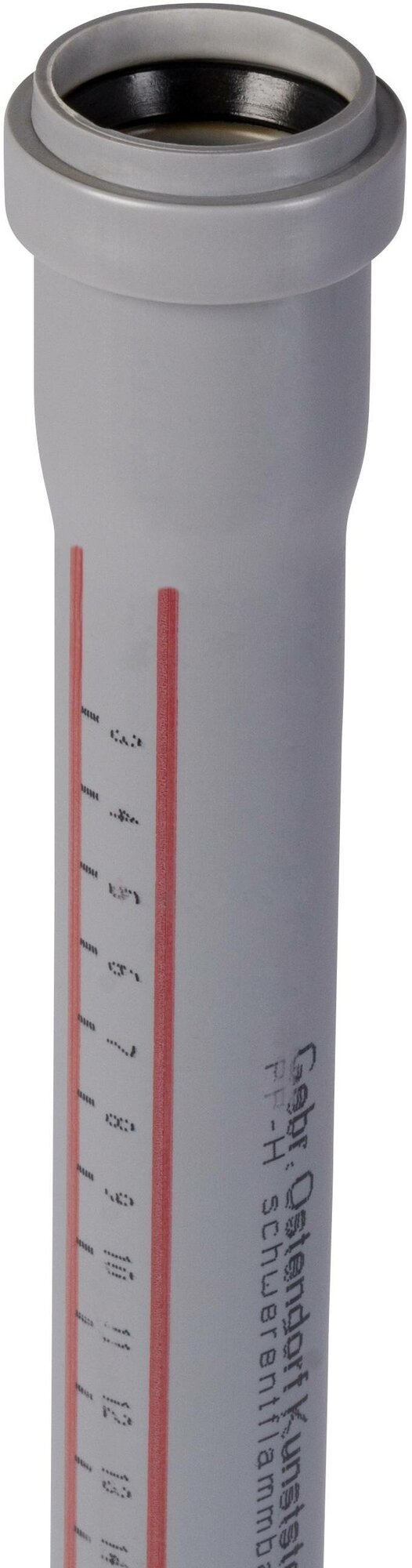 Additional Information: Resistance to aggressive wastewater pH 2 - pH 12, fire resistance according to DIN 4102 class B1; color RAL 7037; the pipes are marked with a centimeter ruler for ease of installation; socket diameter 44 mm, socket length 40 mm