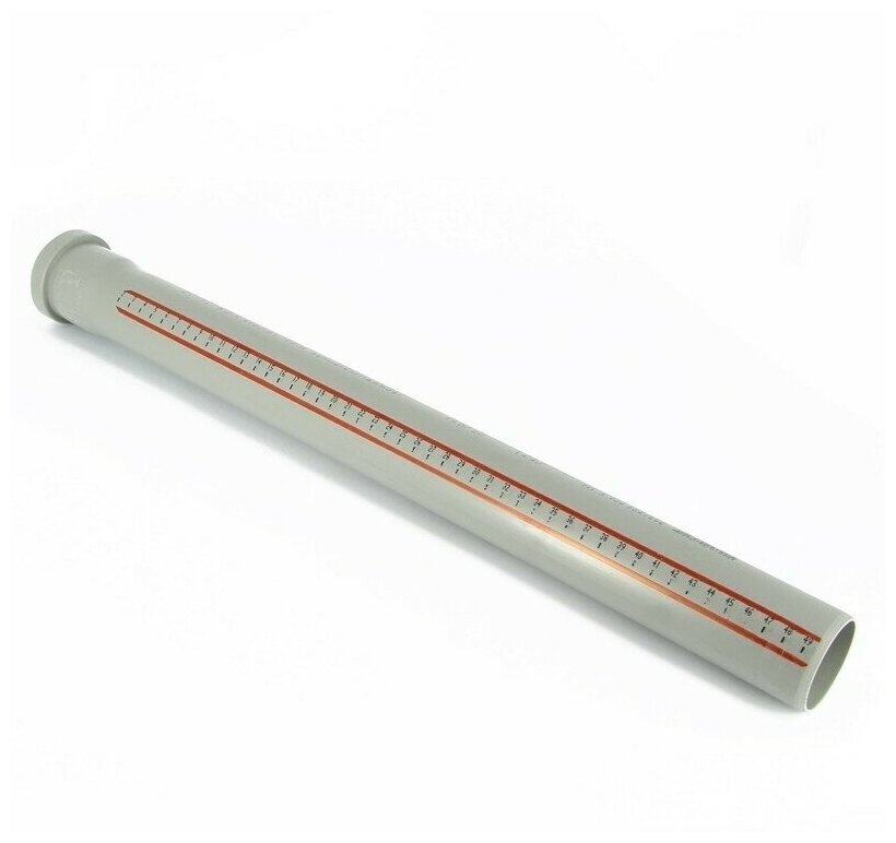 Resistance to aggressive wastewater pH 2 - pH 12, fire resistance according to DIN 4102 class B1; color RAL 7037; the pipes are marked with a centimeter ruler for ease of installation; socket diameter 63 mm, socket length 56 mm