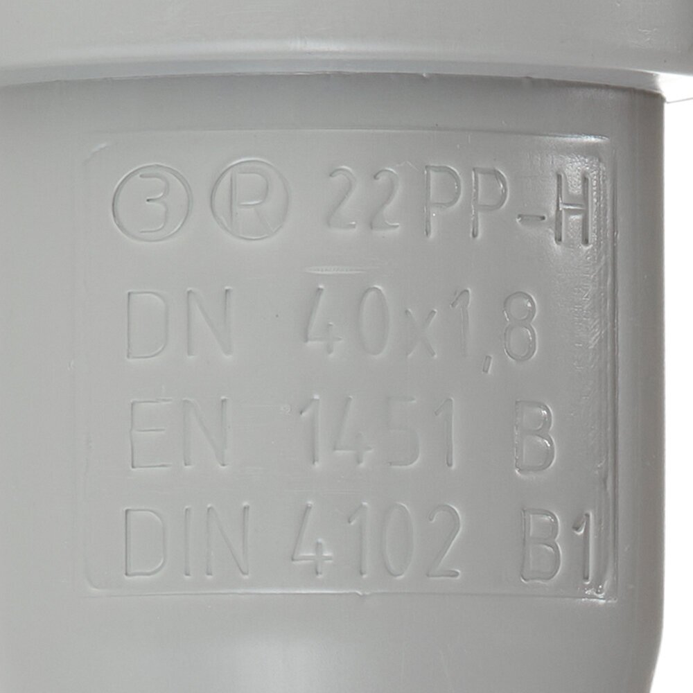 Description: Sewerage type: internal, material: polypropylene, nominal bore: 40, flow type: free-flow, connection method: socket, purpose: household