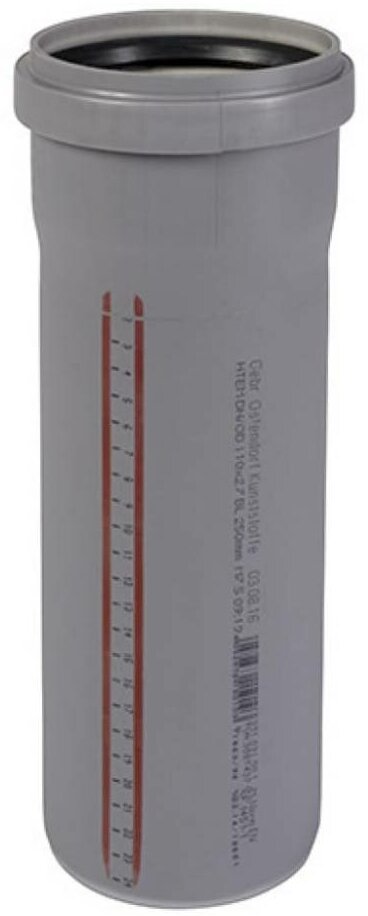 Additional Information: Resistance to aggressive wastewater pH 2 - pH 12, fire resistance according to DIN 4102 class B1; color RAL 7037; the pipes are marked with a centimeter ruler for ease of installation; bell diameter 143 mm, bell length 82 mm
