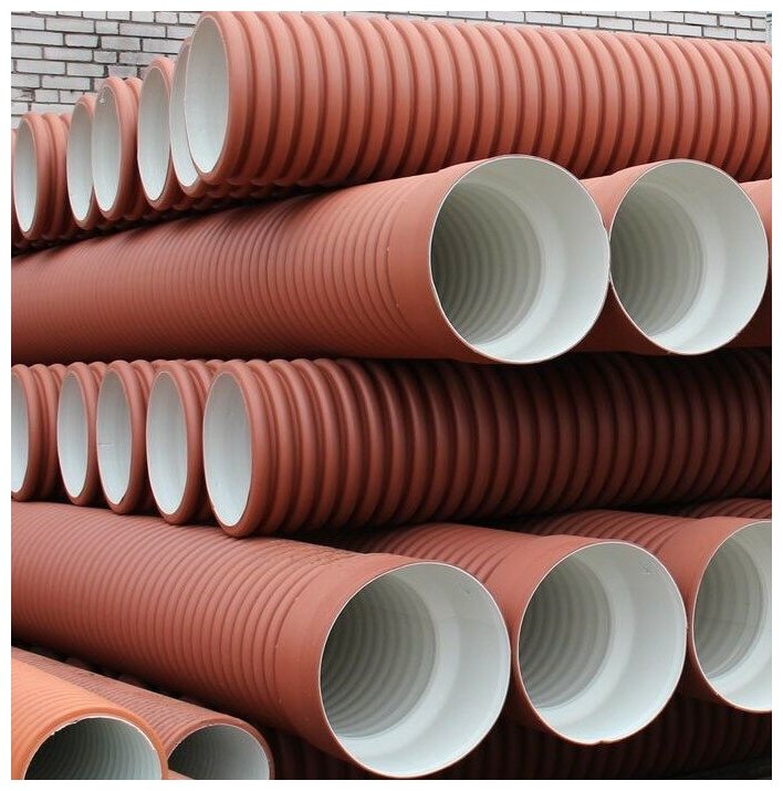 On arrival corrugated plastic two-layer STS d315/276 mm with socket L=6 m SN8 terracotta for gravity sewerage. into a ditch
