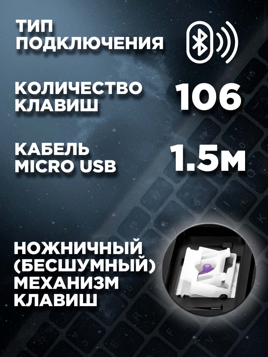 Keyboard type: scissor, chiclet, connection interface: Bluetooth, purpose: for desktop computer, for laptop, backlight: key backlight