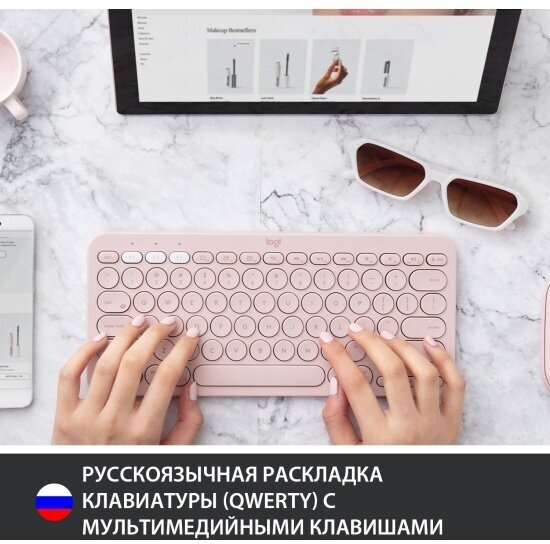 Battery indicator, 3 Bluetooth channel indicators; Compatibility: Windows, Mac, Chrome OS, Android, iOS, Apple TV