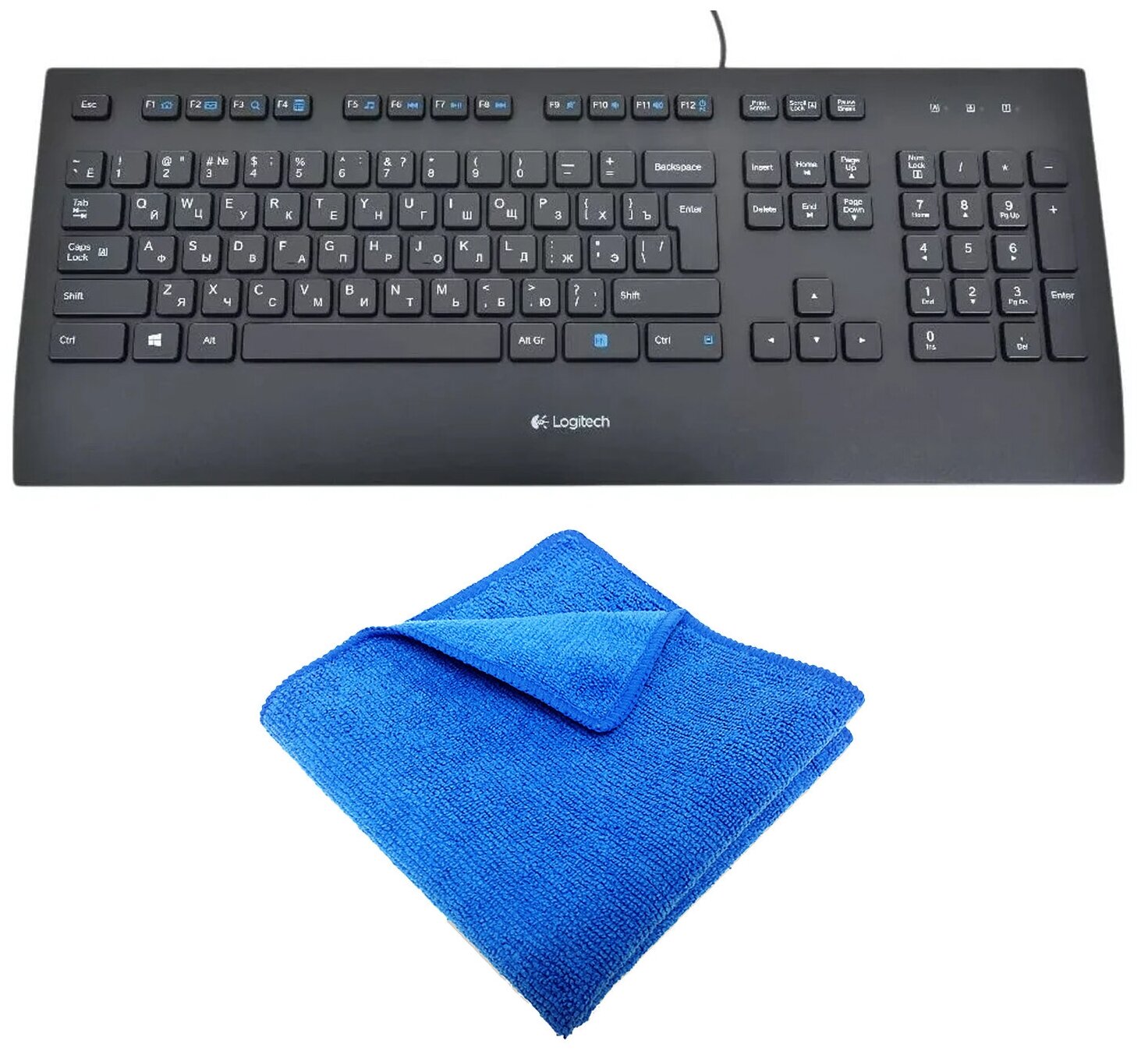 Logitech K280e wired black USB, blue microfiber cloth as a gift, for office, for home