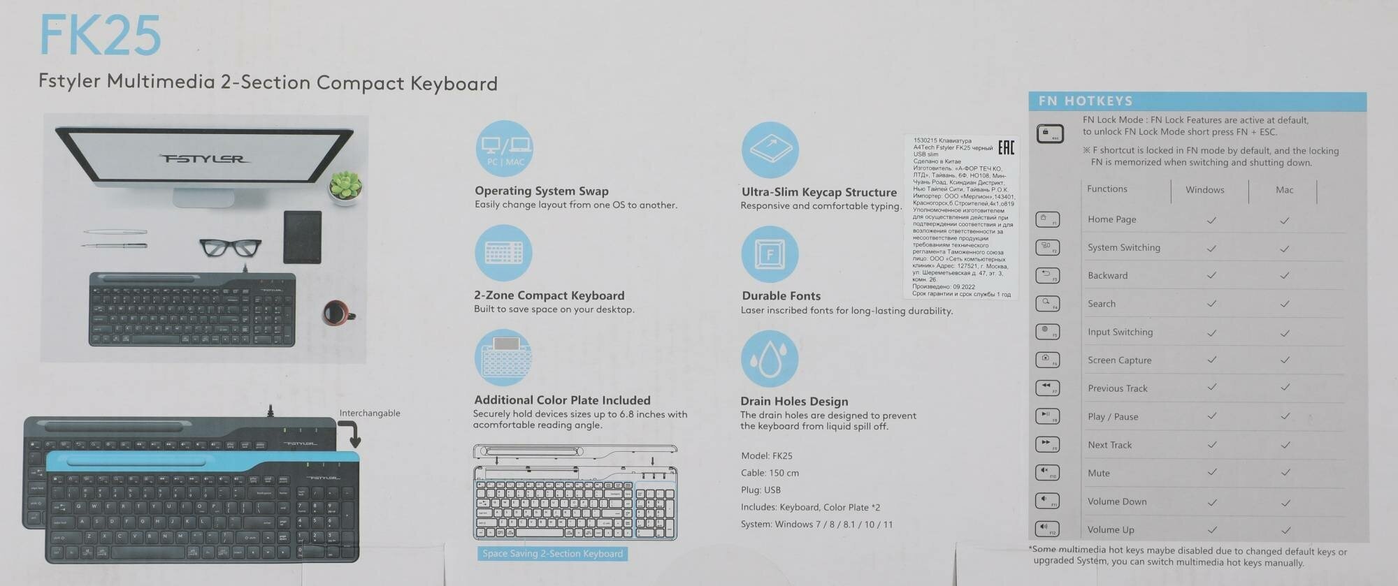 A4Tech A4Tech Fstyler FK25 black USB slim