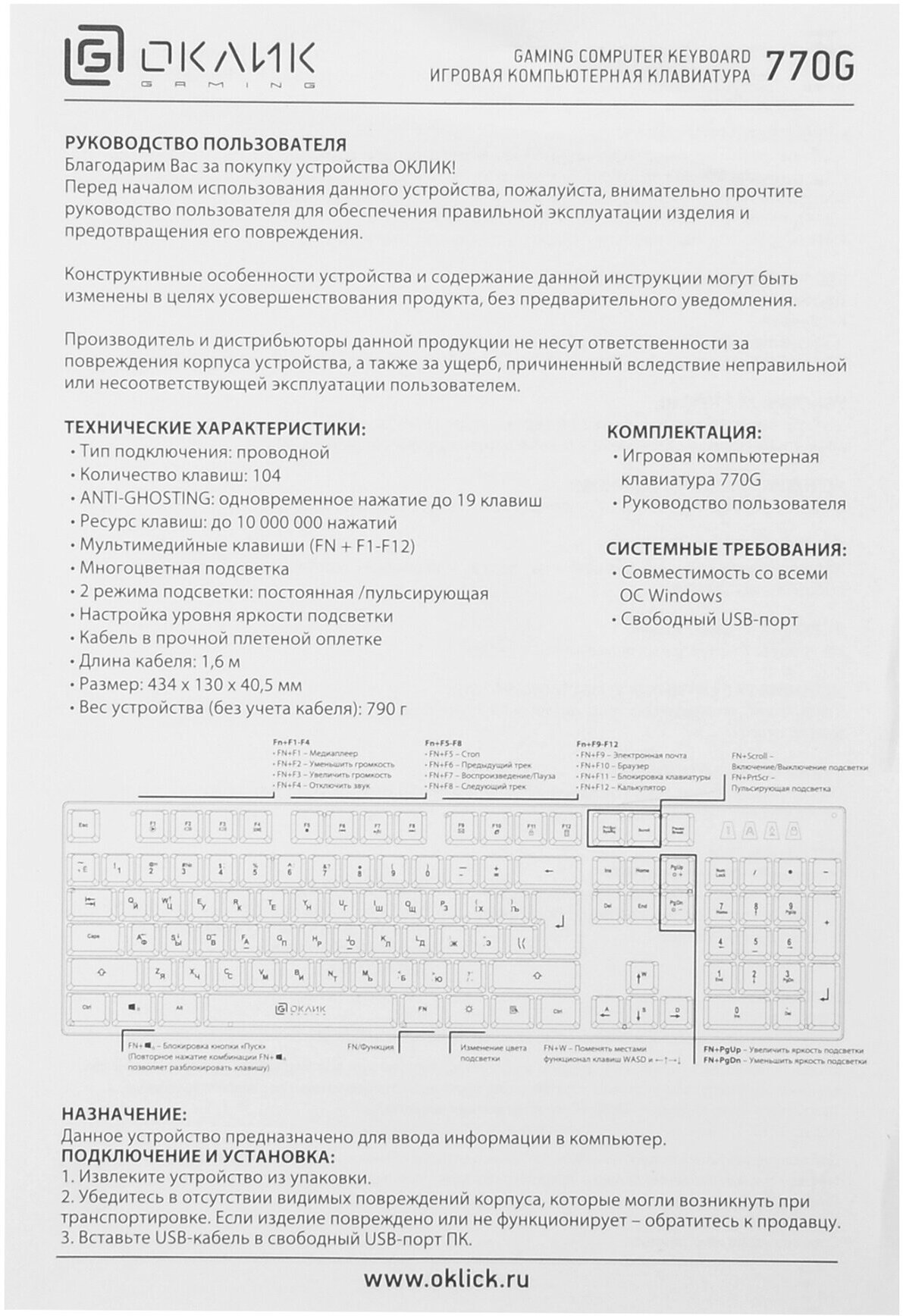 Keyboard type: membrane, connection interface: USB, purpose: for a desktop computer, gaming, gaming, backlight: key backlight, key backlight
