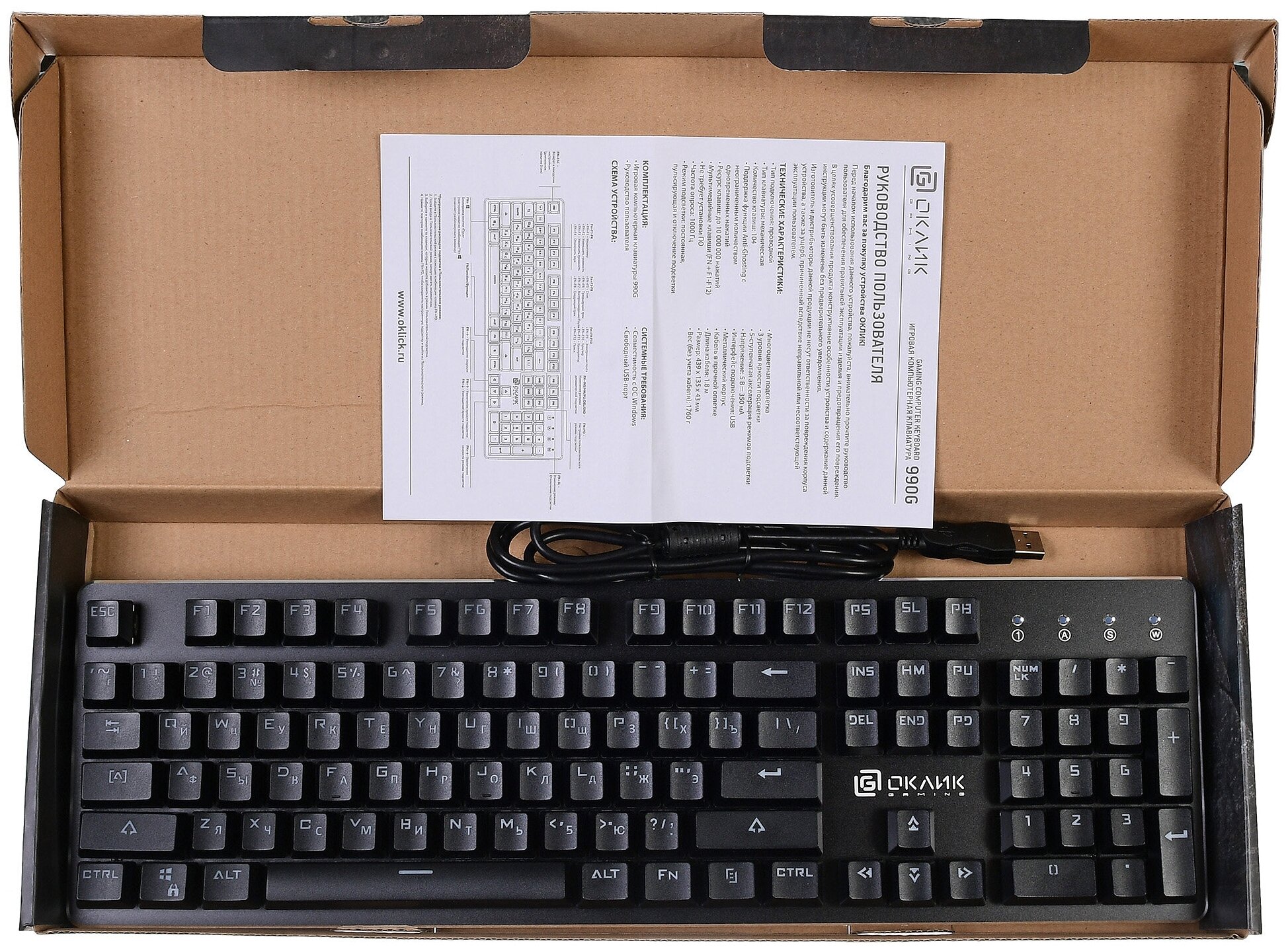 Key resource: up to 10,000,000 keystrokes; anti-ghosting function; backlight: constant, pulsing, switchable, 3 brightness levels, 5-step acceleration