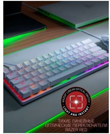Double molded PBT keycaps with additional features markings on the front; detachable USB-C cable; any number of simultaneously pressed keys; polling rate: 1000 Hz; Razer Chroma™ RGB lighting