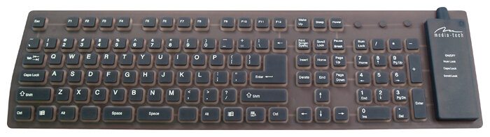 Elastic rubber keyboard with air valve; water, dust, dirt impenetrable