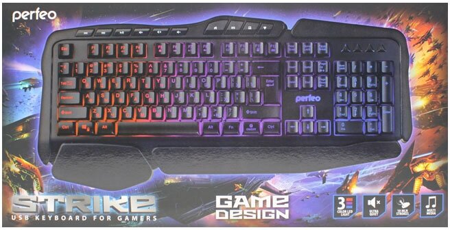 Perfeo STRIKE Multimedia, GAME DESIGN, Illuminated 3 color, USB, black