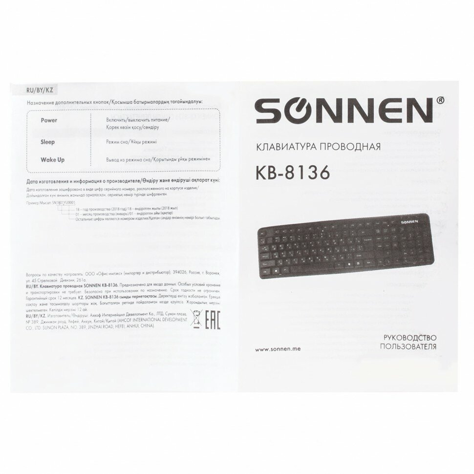 SONNEN KB-8136 Black USB