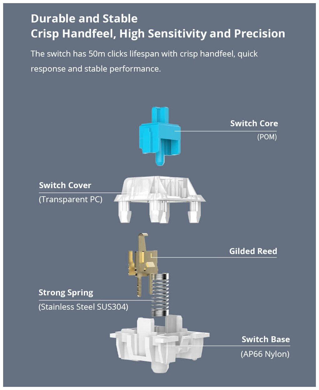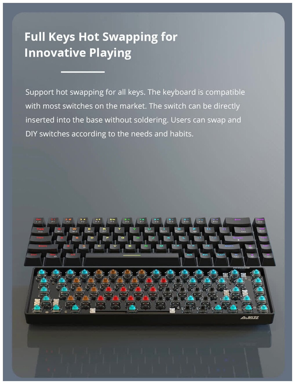 The keyboard comes with a blank acrylic plate that can be imprinted with any image and then installed in the Aura backlit slot provided for it; up to six profiles 1 - default + 5 custom