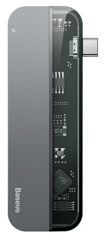Baseus Transparent Series Type-C Multifunctional HUB Adapter Type-C - 2xType-C/2xUSB 3.0/HDMI Gray CAHUB-TD0G