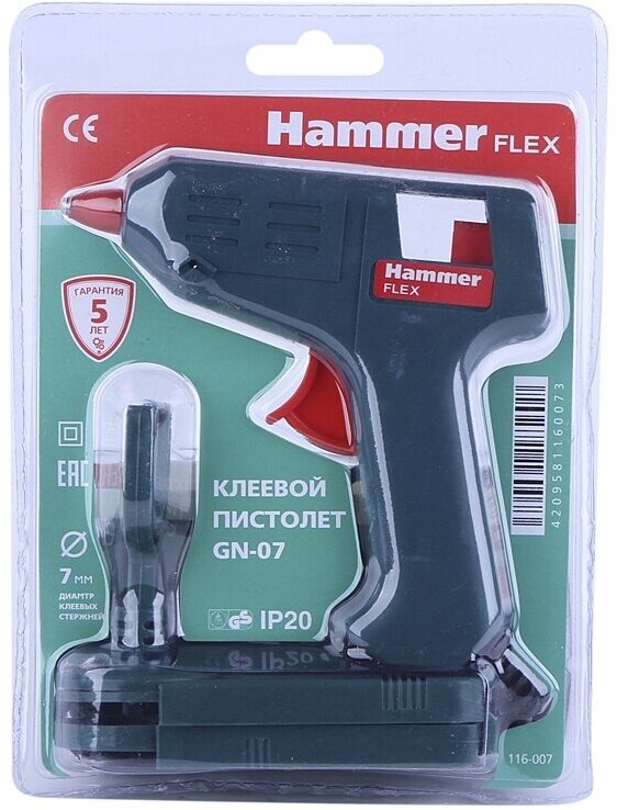 Glue stick diameter: 11.2 mm, type: glue gun, power supply: from the mains, maximum power consumption: 35 W, productivity: 15 g/min, number of nozzles in the set: 2 pcs., number of sticks in the set: 6 pcs, �