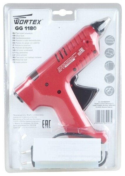 Glue stick diameter: 11.2 mm, type: glue gun, power supply: from the mains, maximum power consumption: 80 W, number of sticks included: 2 pcs., weight: 280 g
