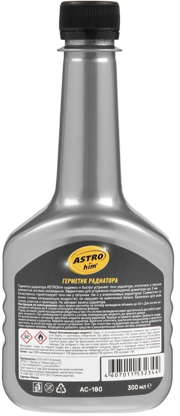 One bottle of AC-180 is designed for a cooling system up to 16 liters. For cooling systems up to 8 liters, use half a bottle.