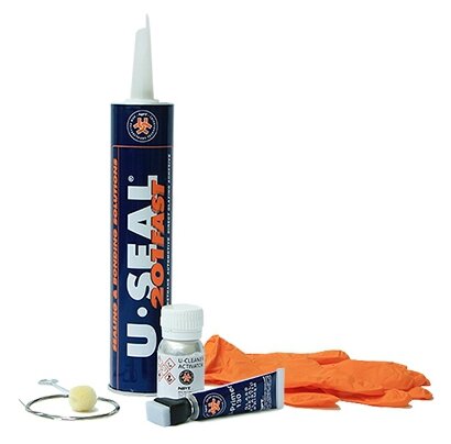 Polyurethane adhesive for glass U-SEAL 201 FAST 310 ml, U-Primer in a tube with applicator 10 ml, U-Cleaner 30 ml, swabs 2 pcs, square string, nitrile gloves