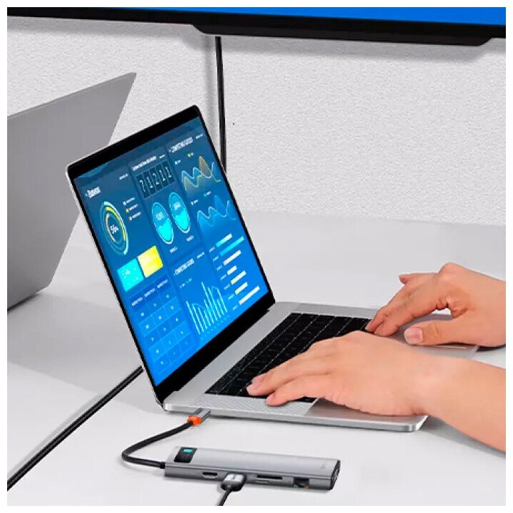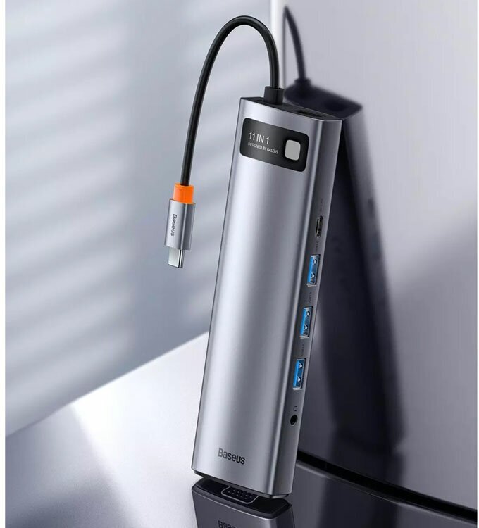 USB-C hub Baseus 11-in-1 HUB PD 100W SD/Micro SD 3USB/1USB-C/1x3.5mm/2HDMI 4K 30Hz/VGA/1Ethernet dark gray CAHUB-CT0G