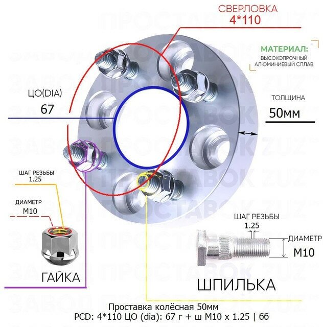 50mm 4*110 TsO 67 included Nut + Stud M10*1.25 hub without collar hub 4x110 4x110
