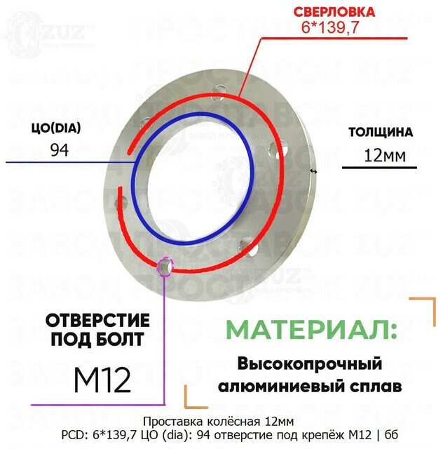 12mm 6*139.7 CO 94 hole for M12 hub without collar hub 6x139.7