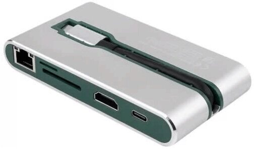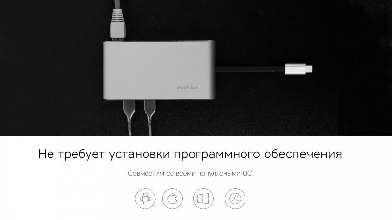 LAN port; card reader for microSDXC and SDXC memory cards; HDMI 4K video output requires Alternate Mode support on the Type-C port of the laptop to which the adapter is connected to work; work indicator light; aluminium case; compatible with macOS 10.10 a