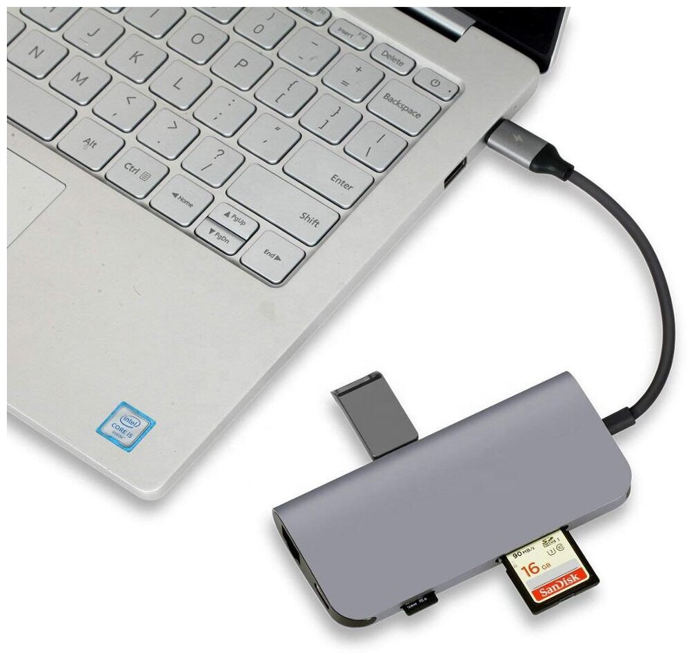 Type-C Hub Hub GSMIN BL-14 8 in 1 LAN, Type-C, SD Card, TF Card, 3xUSB3.0, HDMI Silver
