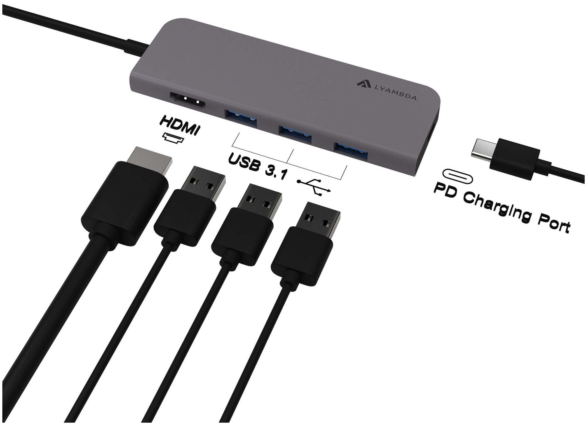 1xHDMI: Supports up to 4Kx2K@30Hz resolution, 1xPower Delivery: Supports PD 3.0 charging up to 100W