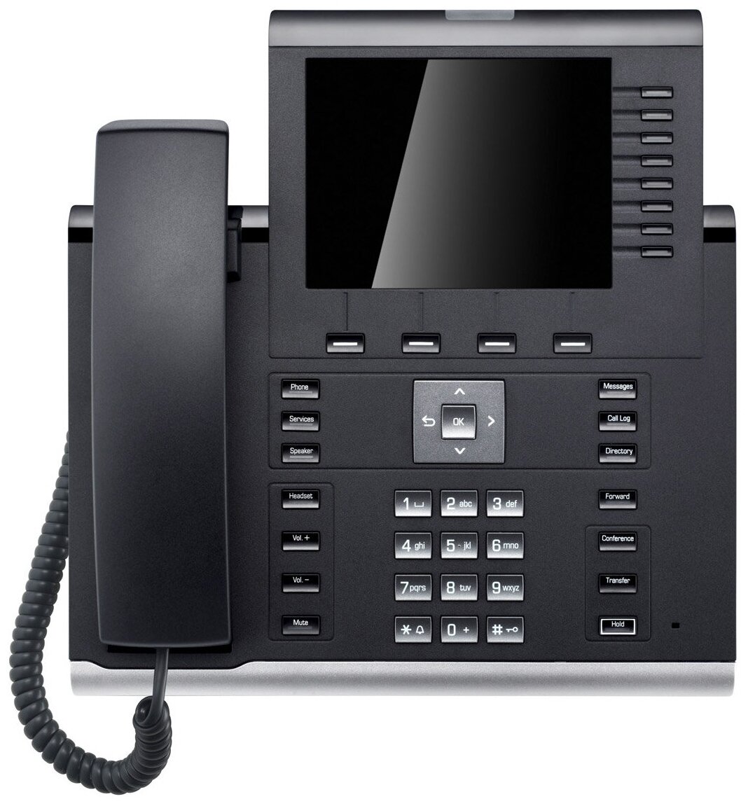 Type: VoIP phone, interfaces: headset connection, Gigabit LAN port, LAN port, WAN port, features: NAT, PoE, SIP, Web interface, support for multiple SIP servers, connection of additional modules, phone functions: built-in phone book, speakerphone, confere